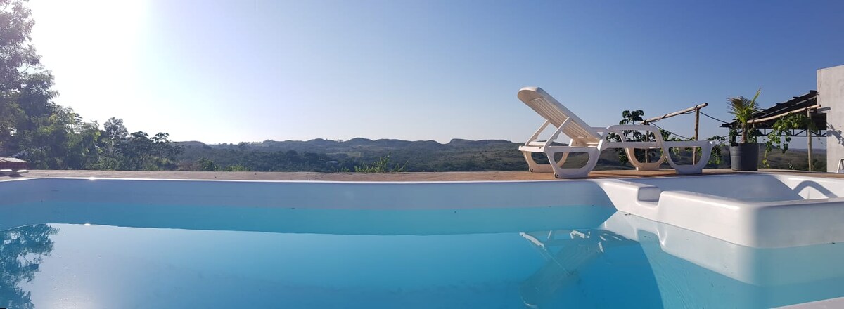 Two cozy Chalets on a 35,000 square meter farm. Quiet location, full of greenery, wild animals, trails and magnificent views of a valley. It has several viewpoints, each with a different beauty. Perfect for resting without leaving the Federal District, just 20 km from downtown Brasilia, with 800 m of road. Experiences with native bees, agroecology, and craft beverage making. The terrain is a bit rough and is not accessible to people with mobility issues.