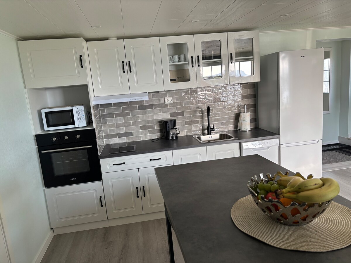 In the idyllic and beautiful Sykkylvsfjorden lies a newly built cabin/waterfront house, high standard, right on the waterfront. Quiet, peaceful, with stunning views of fjords and mountains, less than 10 m from the waterfront. 70 m2 plus large room at the jetty level. Unique design, large window surfaces, and rooms on multiple levels. One bedroom with a double bed, and a large sofa bed in the loft/TV room. Tiled bathroom by bedroom. The lower floor with double gate, view of the fjord, and with its own toilet/laundry room and fridge/freezer.