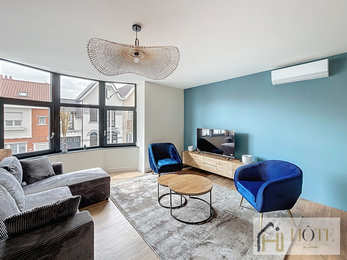 🏡 Stylish accommodation in Bray-Dunes. Relax in this peaceful and modern cocoon, ideally located. The beach, shops and restaurants are a stone's throw away, everything is within walking distance! 🌊 From the kitchen, enjoy a magnificent sea view, perfect for a coffee at sunrise ☕🌅 For the more adventurous, Plopsaland amusement park is only a 10-minute drive away. 🚗 Free parking on site. A perfect place to unwind, enjoy the sea in peace 🌴