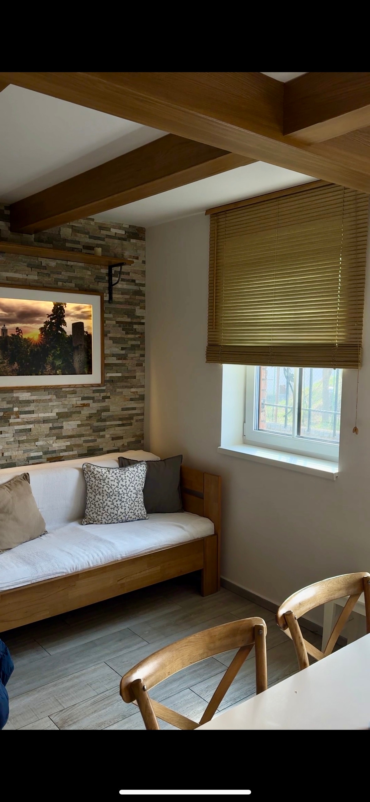 Our accommodation is located in a quiet part of the village of Starovice. It is adjacent to wine cellars, where local winemakers will be happy to welcome you and invite you to taste excellent Moravian wines. The interior of the building is newly renovated and offers modern amenities. The exception is the original bathroom, which will soon be renovated. We offer you a double bed, which can be separated from the single bed by a stylish screen for your privacy. Our accommodation is suitable for a maximum of 4 people with an extra bed and a quality mattress.