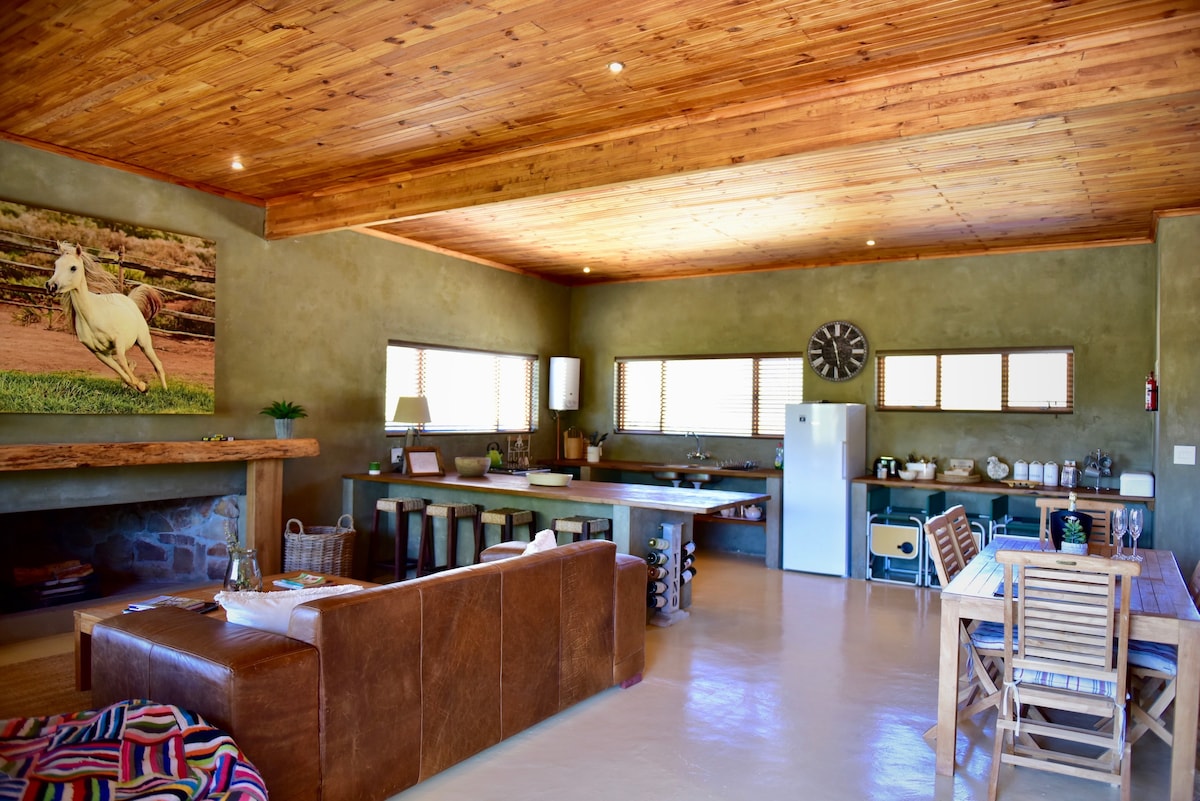 You'll love this unique and romantic escape on the farm ,nestled deep in the mountains of Pietersfontein (Montagu)with lovely mountain views from your hottub or a fireplace at night while touching the stars.This unique house is situated on a working farm where earth meets stars and life stops for a while.