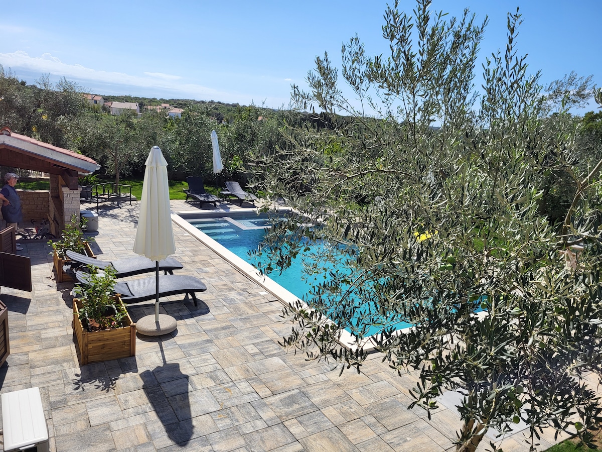 Indulge in comfort at the modern "Astinian - apartments Jadranka" nestled in Štinjan village. Conveniently situated 5 km from bustling Pula and 3 km from picturesque Fažana center, revel in tranquility in a sun-kissed cul-de-sac. Just 400m from the sea, unwind in the lush garden, complete with a lawn, spacious swimming pool, terrace adorned with garden furniture, and barbecue facilities.