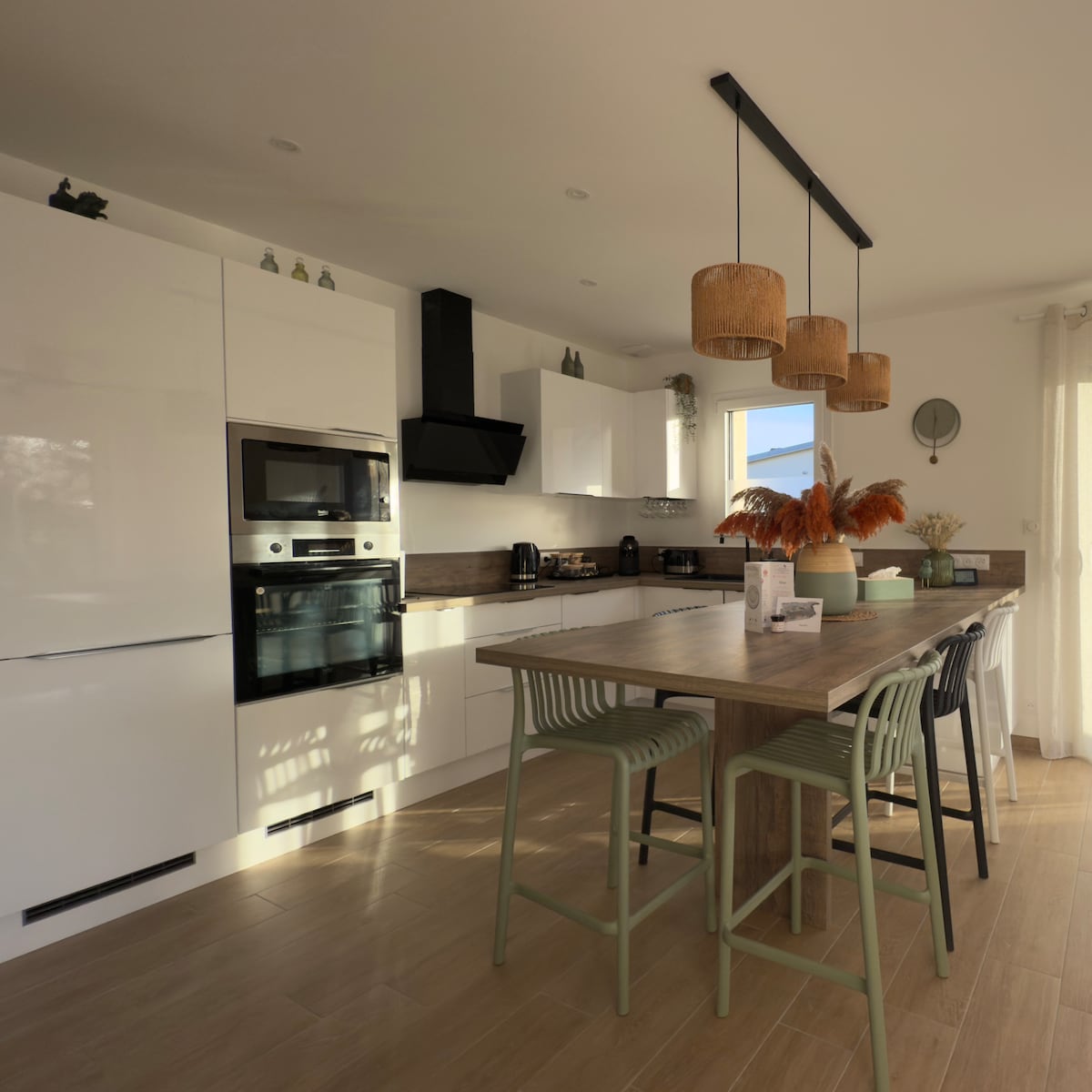 New 70 m2 house, all comforts, located 300 m from the beach and shops in a quiet and family seaside resort 10 minutes from Granville. Equipped kitchen, fridge, dishwasher, induction cooktop, microwave oven, coffee maker, 3 bedrooms with a 160 bed, 1 bed of 140 and 2 beds of 90. 1 sofa bed. 2 bathrooms, shower and bathtub. TV Outdoor area with garden furniture, barbecue, shed, Baby equipment available: bed Wi-Fi and internet connection via box