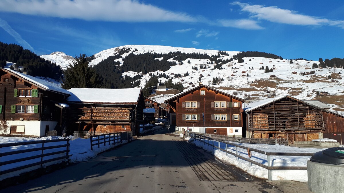 Cozy, small attic apartment in the heart of the Grisons mountains. Immerse yourself in the tranquility and beauty of the Swiss Alps. The Brigels ski resort and hiking paradise is 3.9 kilometers away. The small apartment is heated with wood and consists of a room with a living, dining and sleeping area, a separate kitchen and a separate bathroom. Its simple design exudes warmth and coziness, perfect for nature lovers who are looking for an authentic retreat.