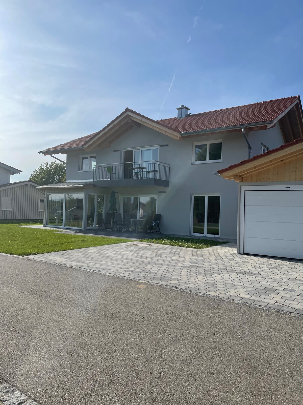 Die 70m2 Wohnung liegt im wunderschönen Chiemgauer Alpenvorland mit Blick auf die Berge. Sie hat einen Wintergarten, Südbalkon und Terasse mit Sitzgelegenheit und Feuerschale. Es gibt ein Schlafzimmer mit Doppelbett im Obergeschoss und eine Ausziehcouch (für 2 personen) im Erdgeschoss. Wahlweise kann eine Klappmatratze zur Verfügung gestellt werden. Der Parkplatz vor dem Grundstück ist frei nutzbar.