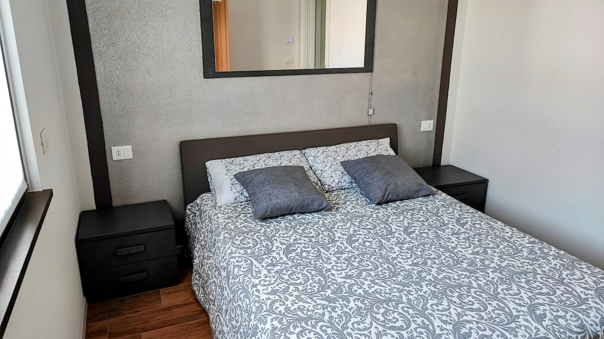 Relax in this quiet space in a semi-central location a stone's throw from the city center and the charming Città Alta. 10 minutes by car from Orio al Serio airport and the A4 Milan-Venice motorway. Large and modern studio apartment of 40 m2 ideal for 2 people max 3 (double bed + 1 single sofa bed). Modern kitchen with washing machine and induction hob. Bathroom with shower. Large balcony overlooking the adjacent park. Air conditioning and underfloor heating.