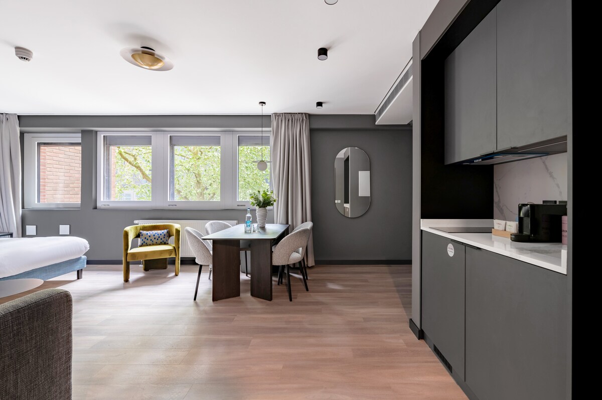 We offer a temporary home base combining the comfort of an apartment with the service of a hotel. At STAYERY you can do everything you’d do at home as well and more. After a day of discovering the neighborhood you can chill in your supersize bed or have a beer in the lounge hanging out with your neighbors. Cook your favorite meal at your kitchenette or move your home office to our coworking space. Just like home. You're very, very welcome.