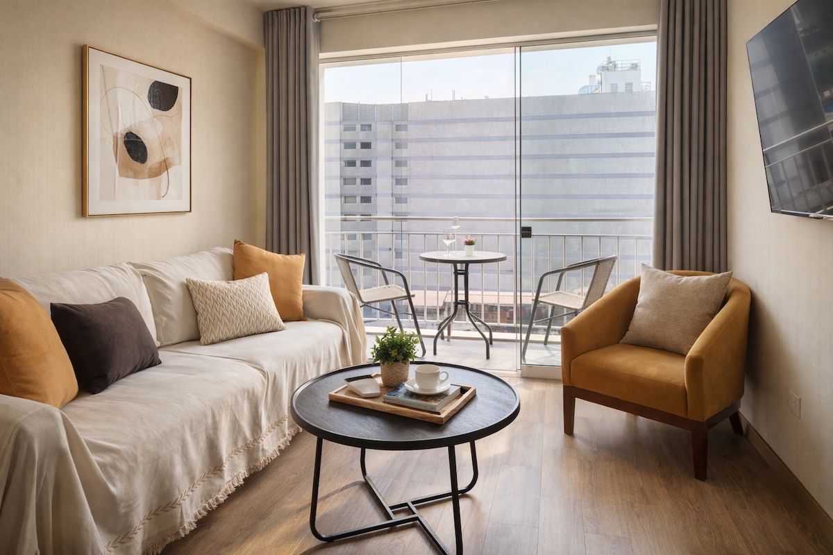 Beautiful and cozy apartment in Jesús María, located in a central and safe area of Lima. This space offers everything you need for a comfortable stay, including families with children: services included, Wi-Fi, a fully equipped kitchen and laundry. In front of La Rambla Shopping Center, a few steps away you will find main avenues, restaurants, cafes, parks and shops. Ideal for those who want to explore the city or enjoy a quiet stay. Welcome!