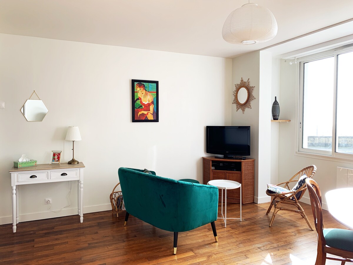 Appartement lumineux pleine vue sur la rade à 260m de la gare. Venez profiter du calme entre la ville et le port de commerce. Au calme, en l'absence de télé, mais avec une belle vue sur mer, un piano et une bibliothèque pour les grands et les petits pourront occuper vos soirées. Vous pouvez vous garer dans la cour de l’immeuble (4 places disponibles) mais premier arrivée, premier servi! ou dans la rue où le stationnement est gratuit.