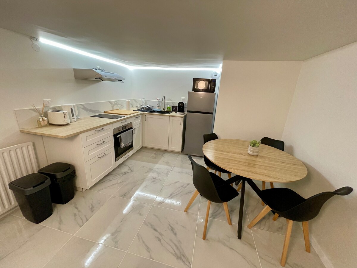 Relax in this quiet and stylish, refurbished 55 m² property with a balcony and 2 parking spaces, located in a quiet, secure residential complex. Located a 7-minute walk from the train station, with access to the A13 motorway 250 metres away, and shops and restaurants within walking distance. Fully equipped apartment with sofa, Smart TV, Bose hi-fi system, and dining area with table and chairs. One bedroom with a queen-size bed (160 cm) and a smart TV with Netflix One baby bedroom Bathroom (towels provided) Washing machine dryer