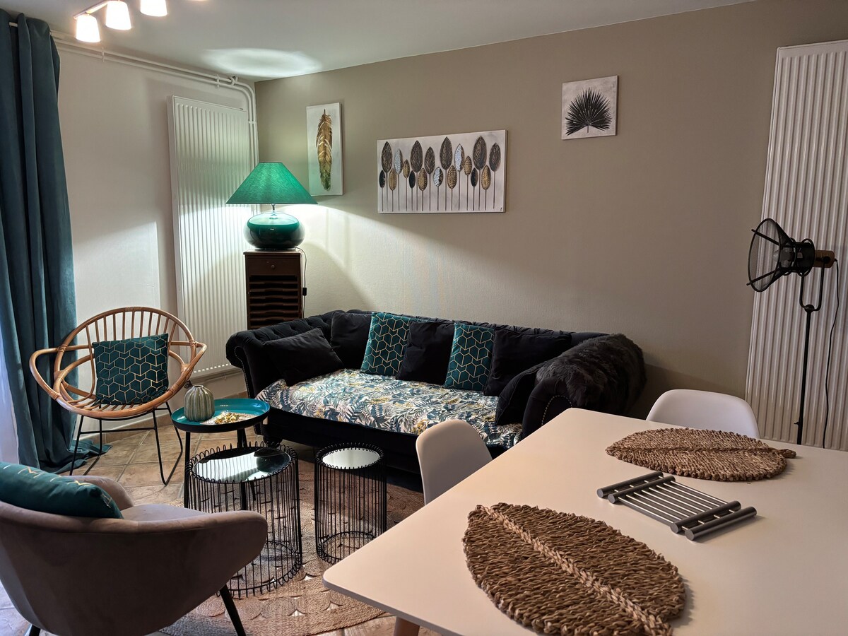 Quiet and elegant accommodation, refurbished, comfortable with sheltered terrace and private garden Located 3 minutes from the shops, 5 minutes from Troyes city center, 10 minutes from McArthurglen factory outlet center, 20 minutes from the lakes and 30 minutes from Nigloland Park 1 free private parking space in secure parking lot Optional: possibility of a private garage for €8/night on reservation Plancha available from mid-April to mid-October A crib and high chair on request