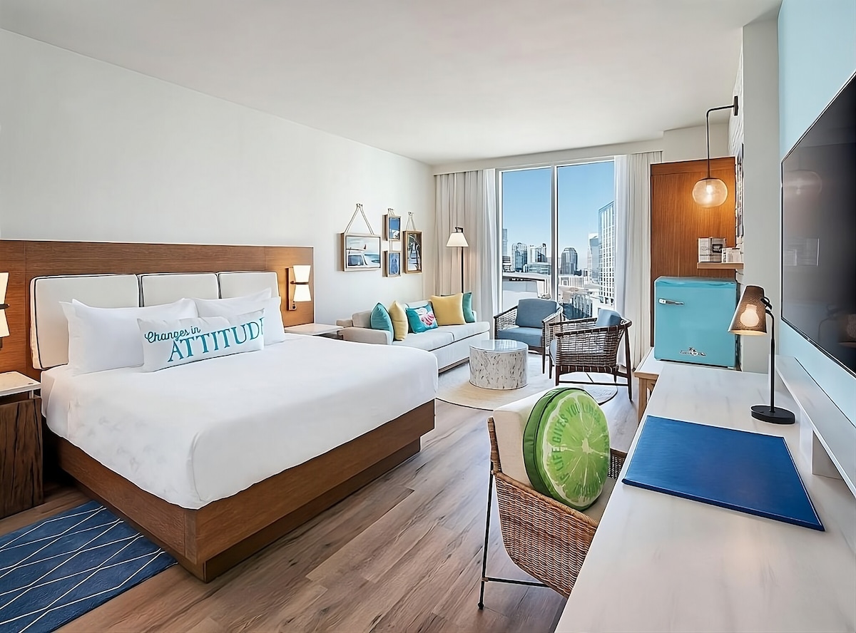 Margaritaville Hotel located in the SoBro neighborhood of downtown Nashville provides easy walking access to all downtown attractions. It features a rooftop pool, pool bar & firepit. Onsite restaurant with live music & Starbucks are located off the lobby. Studio room sleeps 3 with King Bed and Sleeper sofa. Mini kitchen has refrigerator, microwave and dishwasher. Bathroom has shower but no tub. There is a fitness center. Valet parking only. Operated by Wyndham Vacations but no tour required.