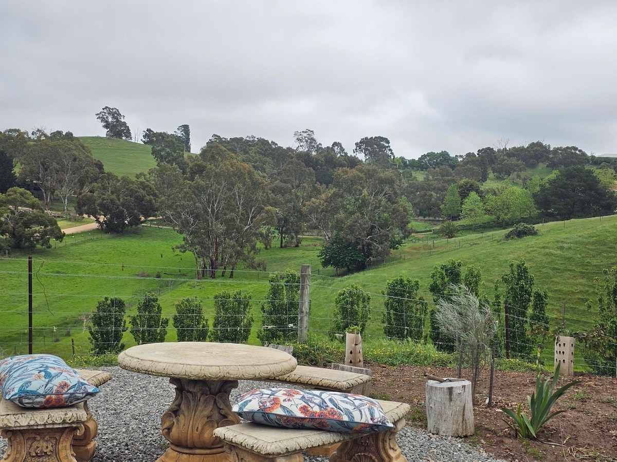 Take it easy at this unique and tranquil private getaway with amazing views . Spend time in nature. Only 4mins Drive to the heart of Hahndorf and many restaurants and wineries. Observe local wildlife. Great walks . Finish the day in an outdoor bath with local bubbles. I also provide private yoga sessions subject to availability, and have an onsite hairdressing salon for all of your hairs needs also subject to availability. Please book ahead if this interests you. This will be your mini retreat