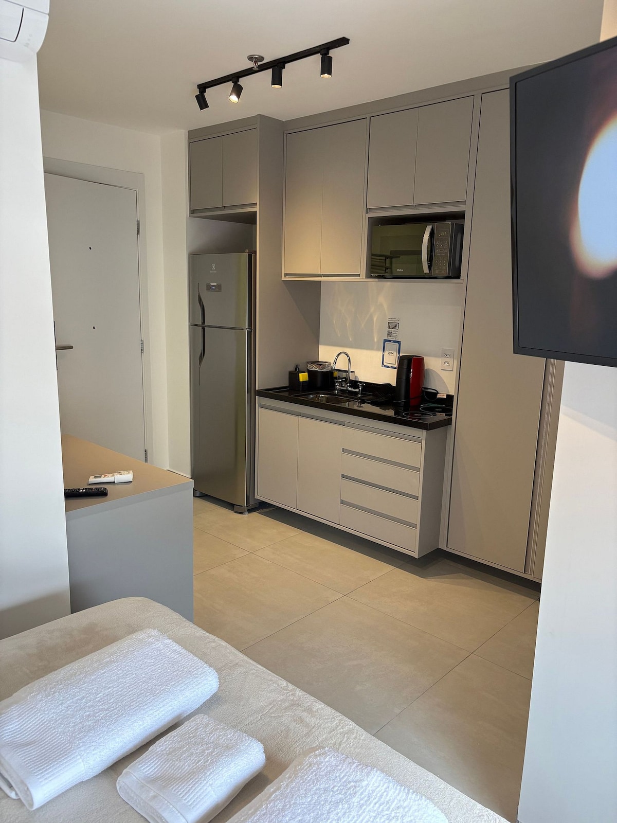 Modern and equipped studio, with 25m², has an integrated environment with the kitchen and 1 bathroom, with a view and glass closure. This apartment has all the comfort you need, to have a nice stay in São Paulo. The building has Quadra de Beach tennis, coworking and gym, as well as washing machines (with additional cost), in the common area of the building. Come and stay in the heart of the Gardens, with good restaurants and shops, just steps from Oscar Freire Street!
