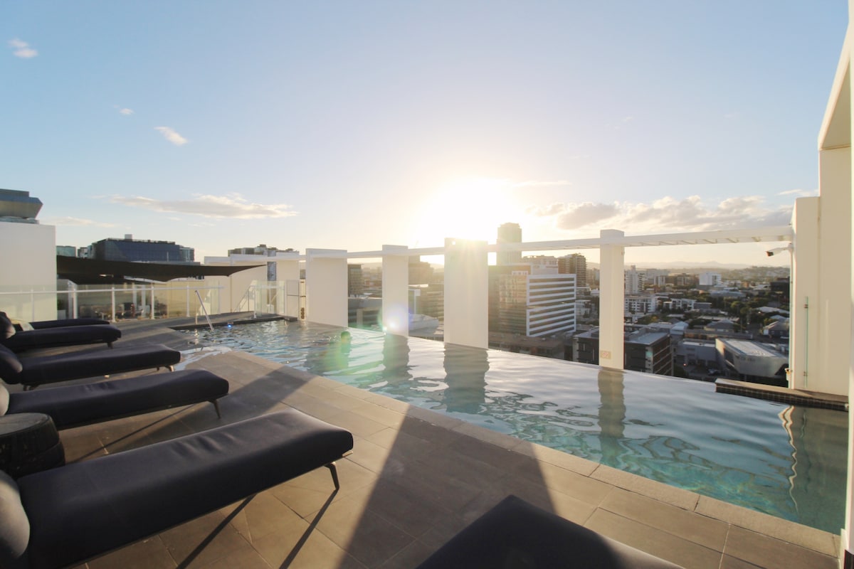 ✨Skyline Views, City Buzz✨ Love the city vibe?Explore Fortitude Valley from our apartment with a breathtaking view. Start your day at James Street Market, art galleries & boutique just 5 mins by car. Catch a scenic sunset view & fine dining at Howard Smith Wharf, 15 mins on foot. Brunswick Street buzzes with energy after dark, just 18 mins on foot. Unwind in our skyline pool as the city lights twinkle below, the perfect way to end your day Ideal for anyone chasing chic city escape.