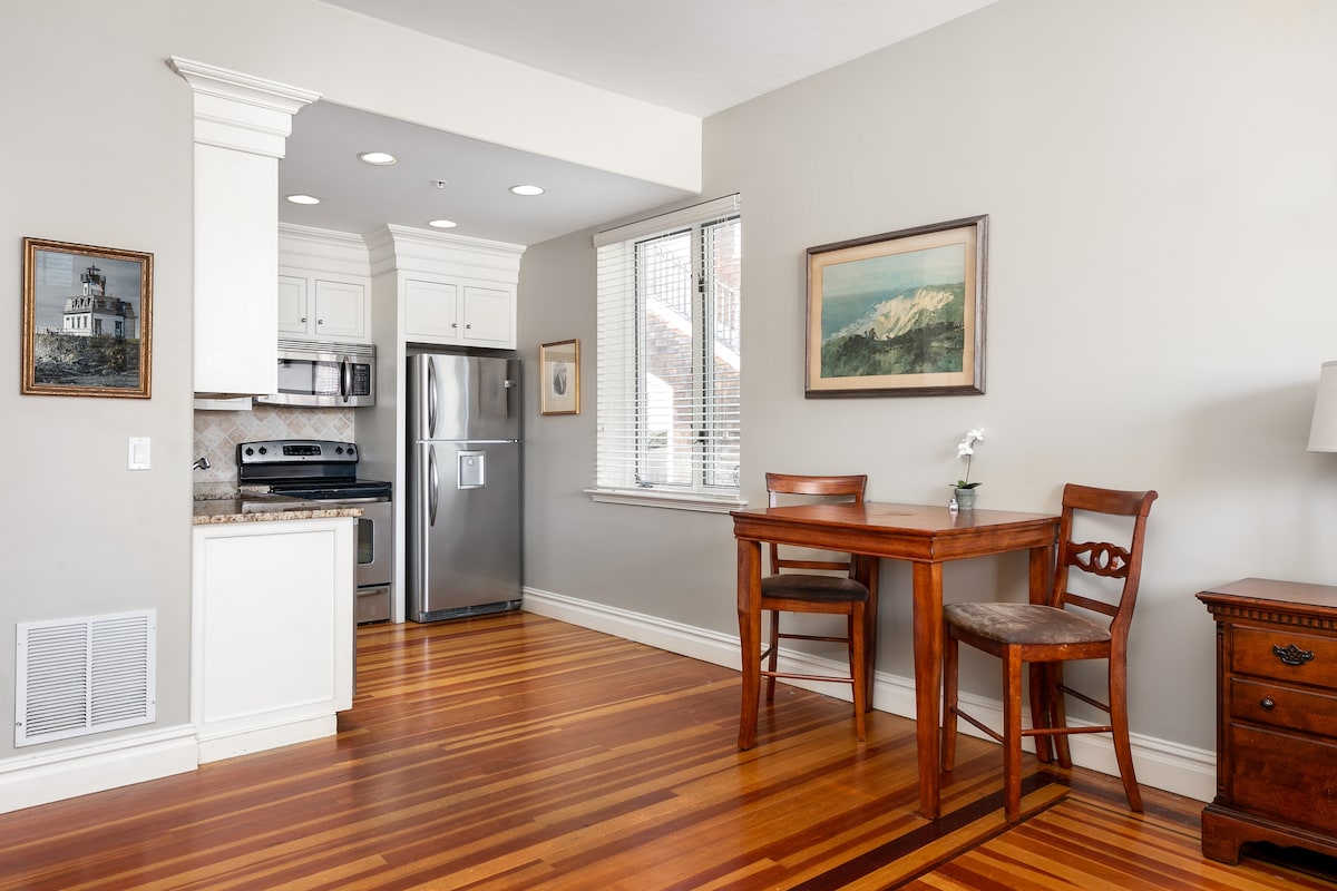 Spacious boutique suite in downtown Newport with full kitchen, parking & fireplaces or balconies in select units. Stay in the heart of downtown Newport — steps from the harbor, historic mansions, and lively Thames Street. Your spacious one-bedroom suite at Pelham Court Hotel offers the perfect balance of home comfort and boutique style, with a full kitchen, on-site parking, and complimentary Wi-Fi.
