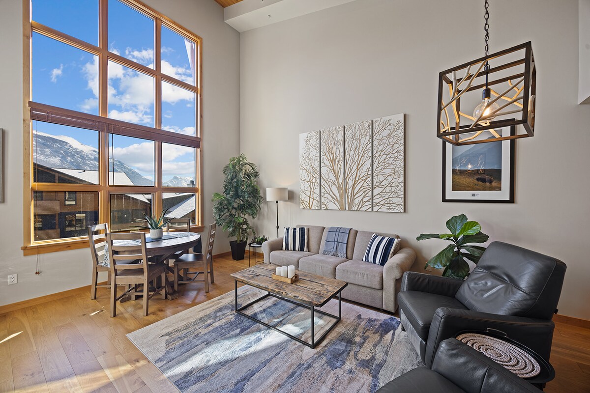 Enjoy our stunning spacious penthouse with vaulted ceilings at a world famous resort and spa located in Canmore. Experience the breathtaking panoramic views in the heart of the Rocky Mountains from your own private deck. The interior is a reflection of Rocky Mountain architecture, featuring two fireplaces, comfortable seating options and full gourmet kitchen with an open lounge area. We are excited to announce that we have a brand new state-of-the-art elevator!