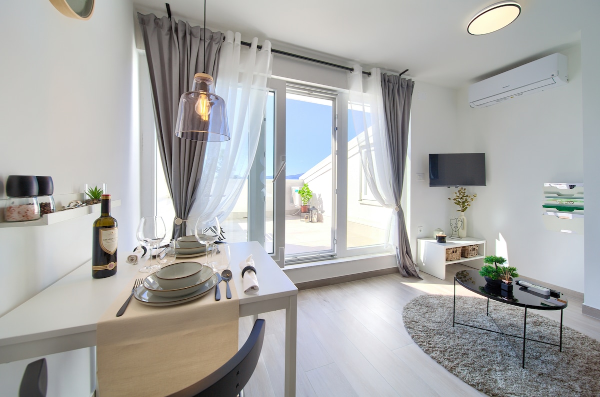 Welcome to our stylish rooftop loft with a big balcony and an amazing panoramic scenery. Wake up to 50 Shades of blue Adriatic sea. An image so perfectly crafted, it heals your soul. Watch windsurfers in the bay early in the morning, and enjoy a relaxing brunch in peace and quiet. See the beauty of storms from far away, find secret beaches nearby, and watch stunning sunsets from our comfy balcony lounge. Breathe in, slow down, and create memories you'll never forget.