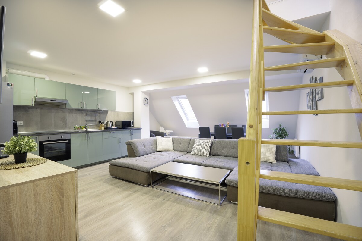 In the heart of Brno, on Pekařská Street, a stylish and spacious 3+1 apartment awaits you, ideal for a comfortable stay. Modern design, quality materials and a cozy atmosphere create a unique environment. The apartment offers two separate rooms, an open spacious living room with a sofa bed, a fully equipped kitchen with a coffee machine, air conditioning, a washing machine and a dryer. Thanks to the attic location, it is airy and bright. Free Wi-Fi. Historical monuments, restaurants and cafes are within reach. Book your appointment today!
