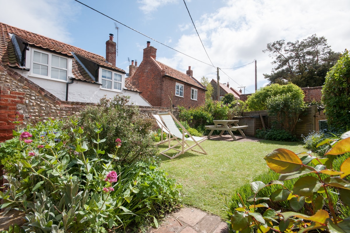 No 1 Boatman's Row is an idyllic former fisherman's cottage in the historic harbour town of Wells-next-the-sea. It is tucked away on a quiet lane, a 5-minute stroll to the quay, pubs and shops. It has one bedroom with a king sized bed and sleeps two adults in comfort. The cottage has a fully-equipped kitchen, wood-burning stove, parking, an attic room with views of the marshes and a sunny, south-facing cottage garden. The stunning sandy beaches of Wells and Holkham are a 25-minute walk away.