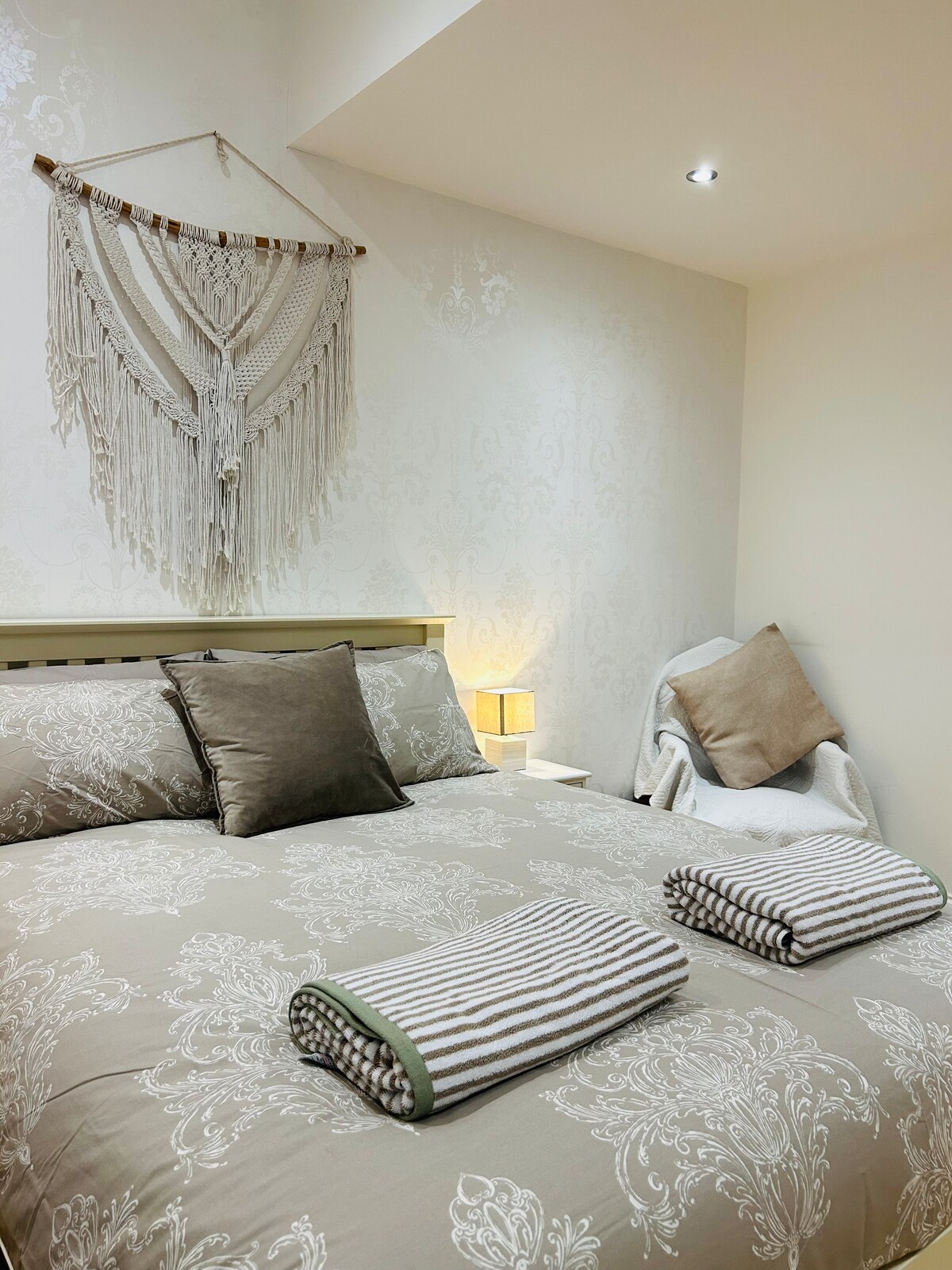Welcome to your cosy, modern 1-bed flat in Cliftonville, just 5 mins to the beach and 10 mins to Margate’s Old Town. This spacious lower-ground flat has a private entrance, luxury king bed and a calm, stylish design. Enjoy the morning sun on your private patio—a leafy garden oasis with ferns, bamboo and a banana tree. A peaceful, welcoming hideaway close to cafés, galleries and the seafront, perfect for relaxing after a days exploration of Margate’s finest beaches, vintage shops and food spots.