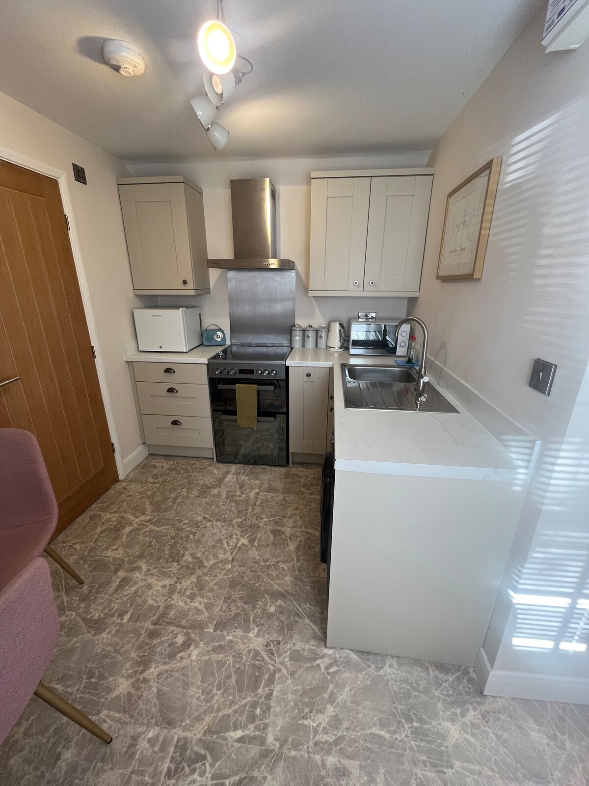 Peasholm Cove is a beautiful ground floor studio apartment with its own outside space for al-fresco dining , the apartment boasts a superb location in Scarboroughs north bay , 1 minute to the famous peasholm park , 2 minutes to the Open Air Theatre, 5 minutes to the beach , This perfect cosy romantic get away offers a light and airy open plan living and dining space with separate Bath room. This beautiful maintained apartment will not disappoint for whatever reason your visit to Scarborough