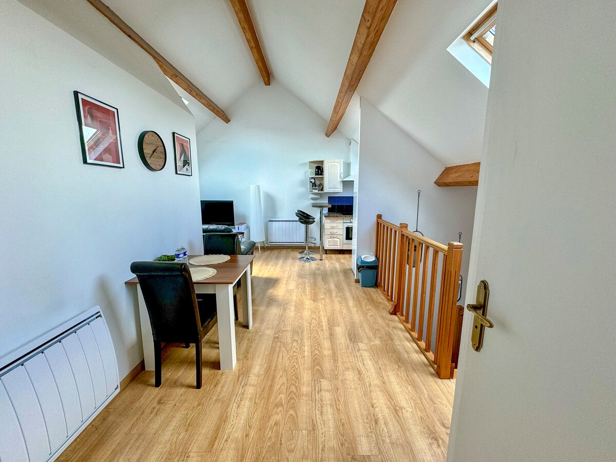 Charming 15 m2 Studio adjoining our house with private entrance, renovated and decorated in industrial style offering easy access to all sites (20 min from Disneyland Paris, 2 km from the Base de Vaires - JO) and amenities. Bus stops 150 meters away, Vaires-Torcy train station is a 10-minute walk away (Paris Gare de l'Est 20 minutes). Shops within a 5-minute walk: Carrefour Express open 7 days a week from 8am to 8pm, bakery, pharmacy, hairdresser, tobacconist, supermarket, pizzeria, hospital, park and woods...