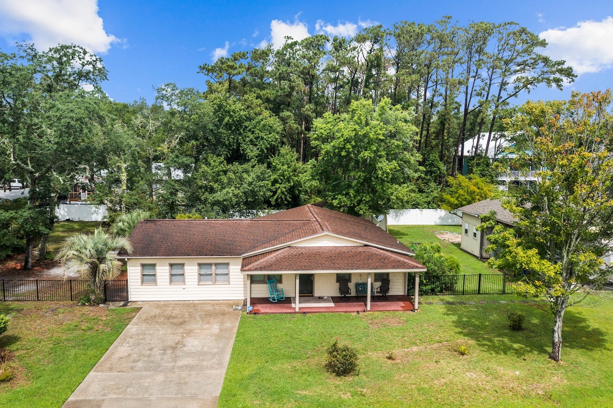 Summerfell offers what beachfront rentals can't; three screened porches with fans, a fully fenced private yard for the kids and dogs, and a downstairs entertainment room with ping pong and TV—all just a 7-10 minute walk to the beach. No traffic noise. No crowds. Just a peaceful, golf cart friendly wooded neighborhood where families actually relax. Premium finishes, fully equipped kitchen, sleeps 8. This is Oak Island for people who want space, not just proximity.