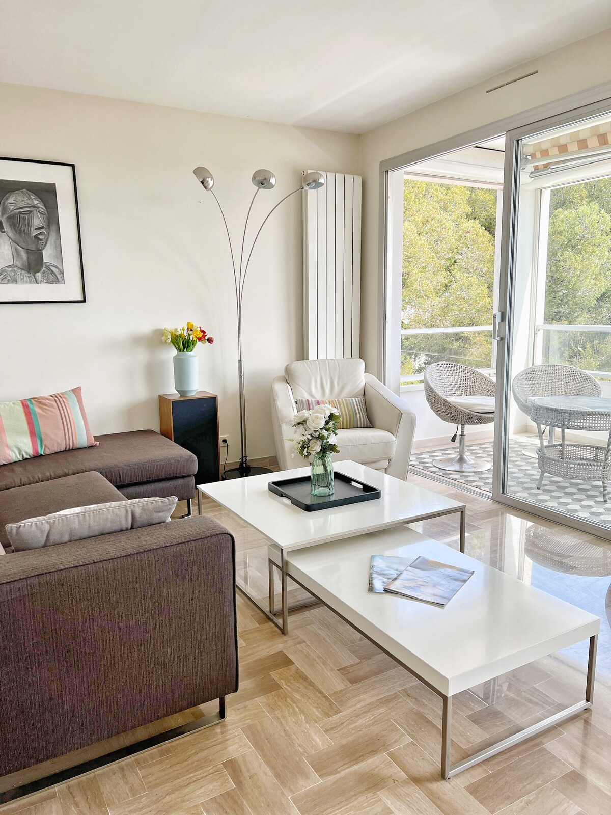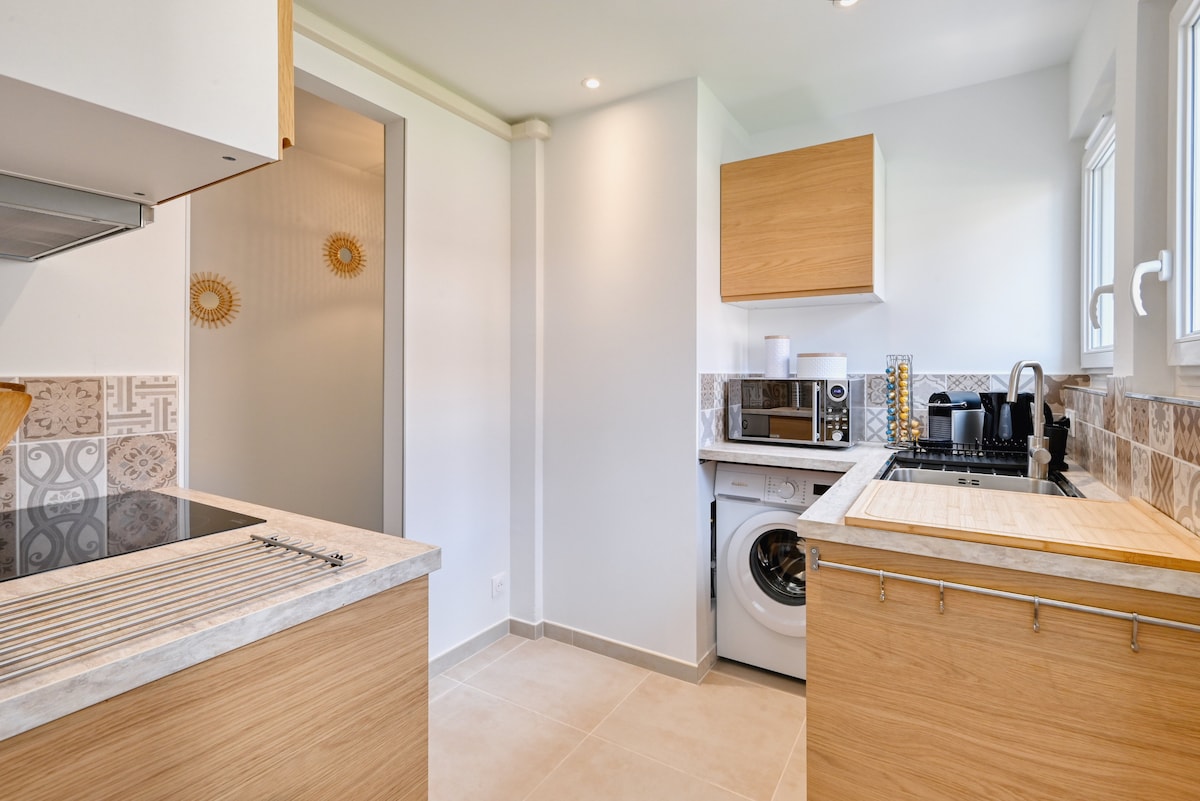 High-end 2-bedroom apartment 30 meters from the beach, private access and parking. Renovated in 2025 with noble materials: oak parquet, travertine, custom kitchen, walk-in shower. Luxury sofa bed (La Maison du Convertible), full air conditioning. Linen included. Rare moment: coffee on the sand or midnight swim at the end of the garden. Direct access to the coastal trail and the Mediterranean Park for an unforgettable stay by the sea.