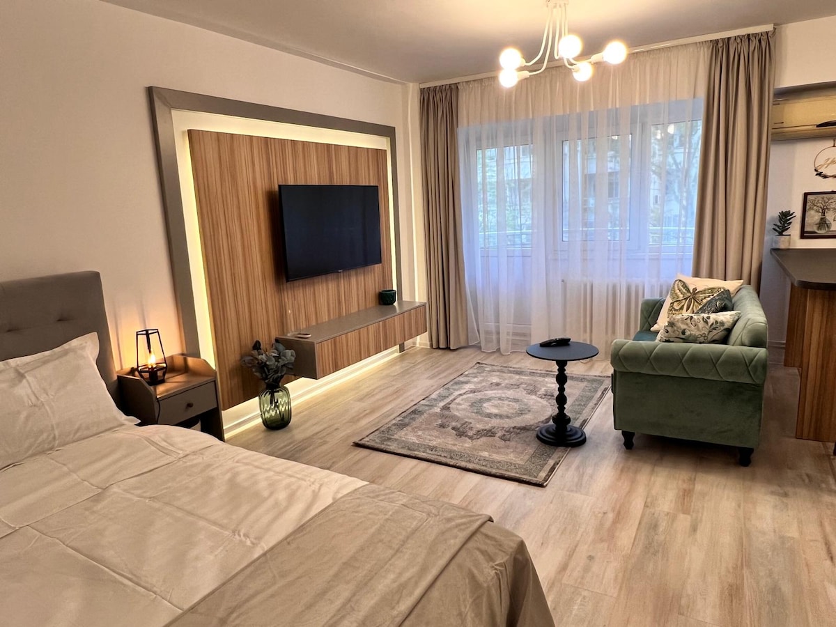 Welcome to Serenity Haven-your peaceful escape in Bucharest. Our studio is a refined retreat designed in a modern, minimalist style. The space features warm tones, natural textures and elegant finishes that create a calming and stylish atmosphere. Book now and let the Serenity Haven experience begin!