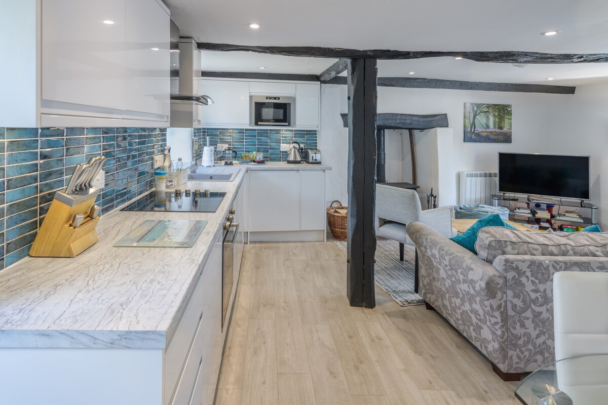 Quaint, thatched, Grade II listed, C16th cottage in centre of rural village, close to coast. Original slate floors (with rugs), low beamed ceilings, inglenook fireplace with electric heater. REFURBISHED BATHROOM for 2024. Comfortably furnished. Overlooks village square and plenty of parking. Kitchen, accessed via Grade II listed wooden archway, overlooks enclosed rear garden. Electric heating in all rooms. Friendly village has pub (dogs accepted), Shop, churches, play area, walks.