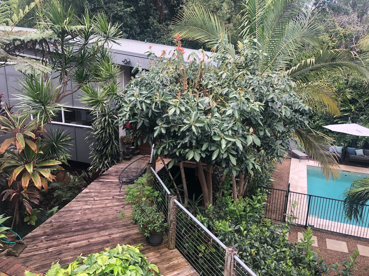 *SPECIAL* Complimentary bottle of champers if you are staying between now and 28 Feb 2026. Luxury private residence adjacent to Buderim Forest Park, where Martin's Creek cascades over a series of waterfalls. Only 700m to Buderim village's eateries and boutiques. Lovingly created to spoil you to bits! Wake to birdsong, wander down the gully, morning coffee in the hanging chair, take up a book in the window seat and at end of day a relaxing magnesium bath under the stars. You won't be disturbed!