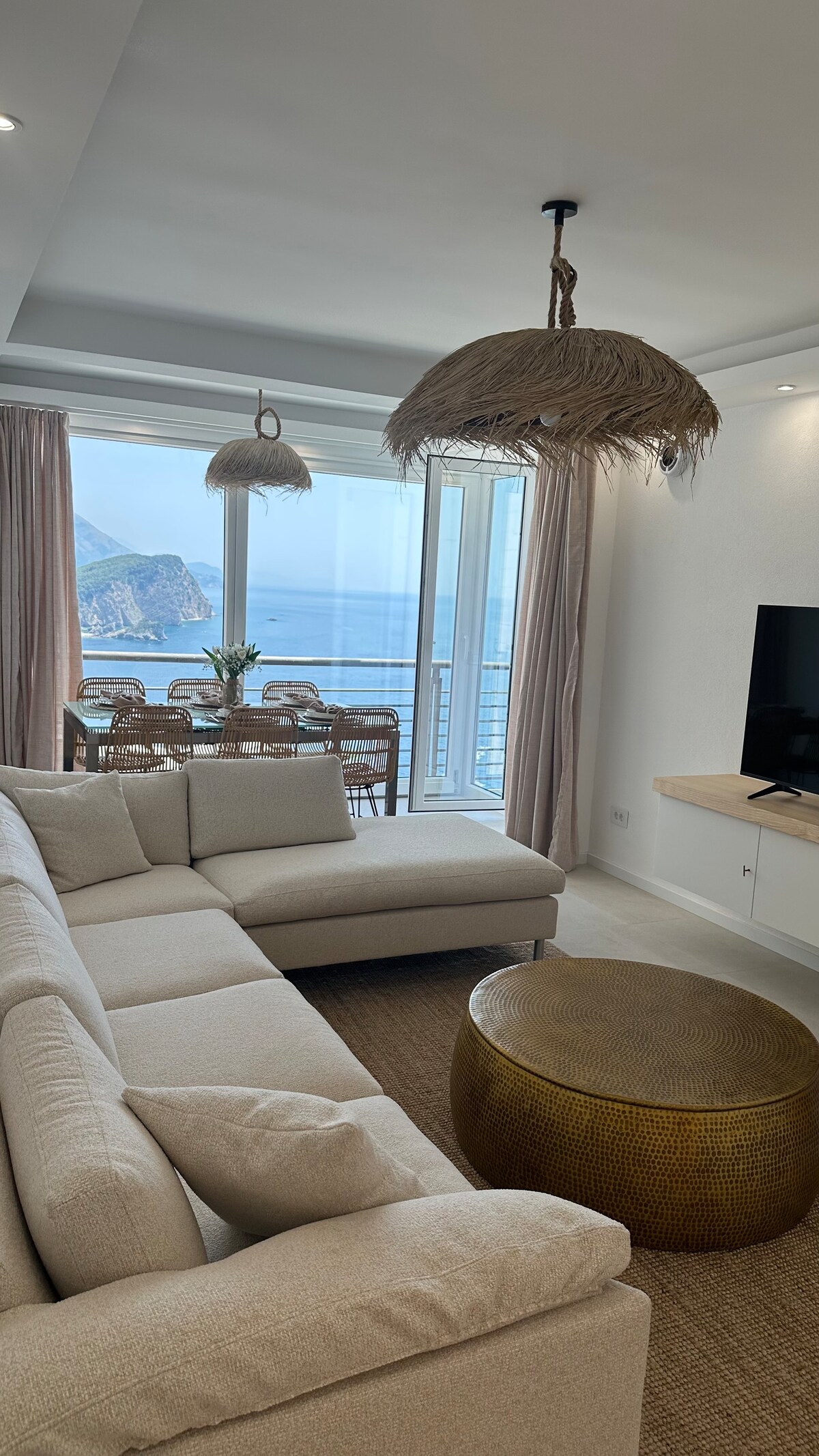 Предлагается новый стильный апартамент с видом на море,оригинальной планировкой и комфортным дизайнерским решением. В распоряжении гостей- отдельная спальня, большая гостиная с оборудованной кухней и барной стойкой. В обоих комнатах smartTV, отопление и кондиционеры. Со всех окон открывается вид на море,а терраса завораживает видом на остров - одну из основных достопримечательностей Будвы. Апартамент расположен в 5 минутах езды до пляжа и Старого города Будвы. И в 17 км до аэропорта Тиват.