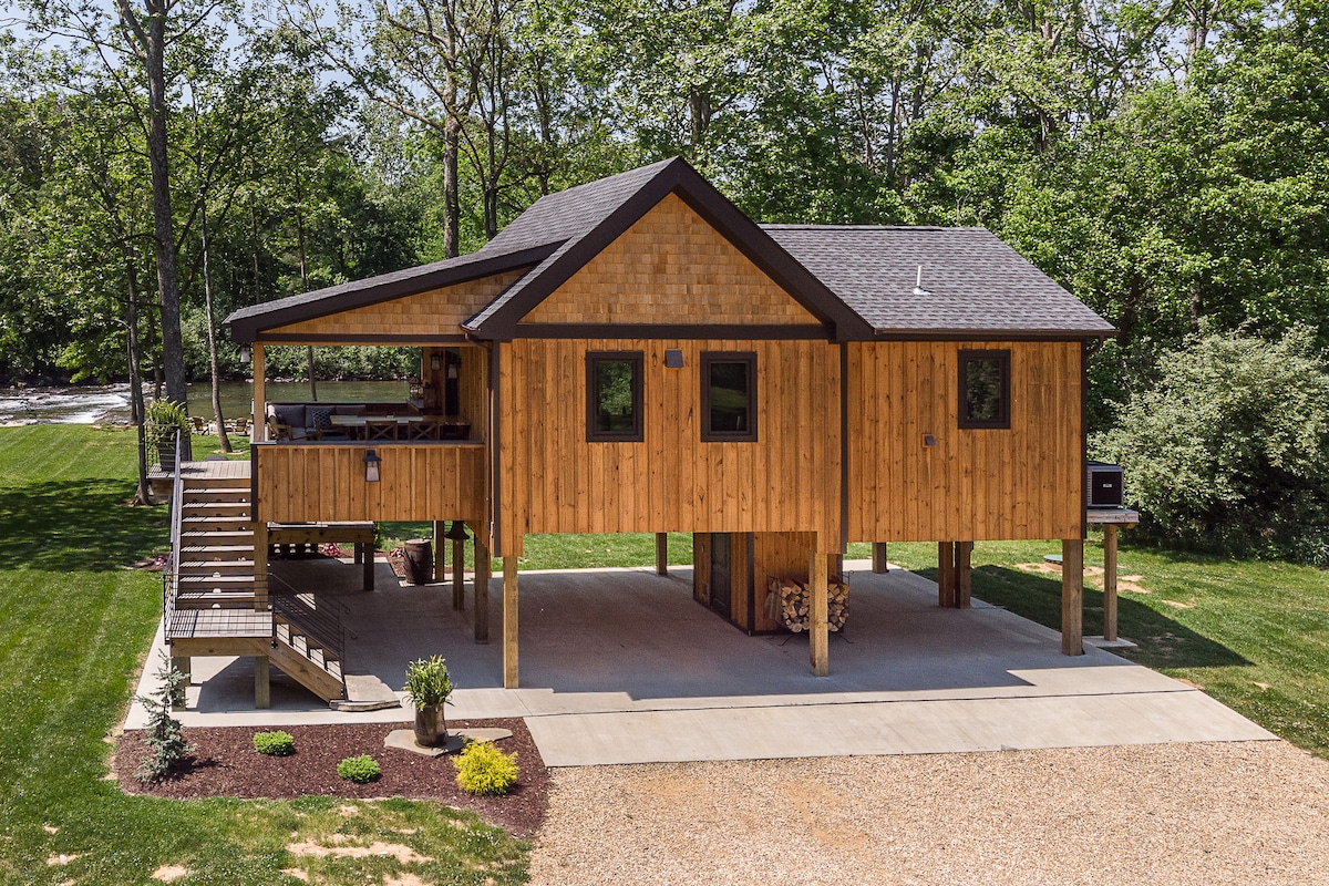 Welcome to The Maury River Treehouse! This luxury timber frame cabin sits on the banks of the Maury River. The Treehouse was built almost entirely by local craftsmen making it a true showstopper! Located 9 miles from Lexington, Washington & Lee and Virginia Military Institute. It's a fisherman's dream, paddlers paradise or just a relaxing retreat! The true timber frame construction, stone fireplace, gourmet kitchen and park like setting will take your breath away!!