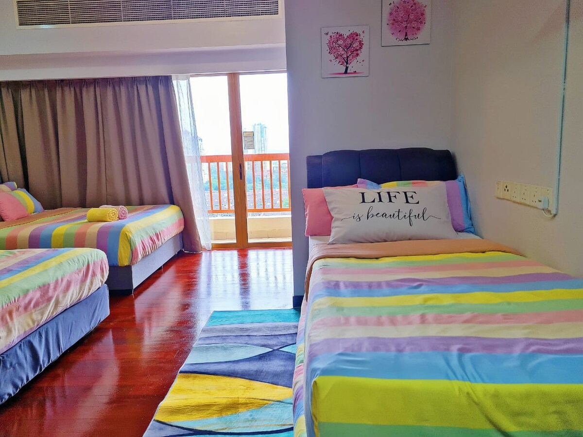 适合远程工作者,留学生和家庭和商务旅游,网速快,便利 Suitable for Remote worker, Students, Family trip, Business trip, Speedy wifi, Convenient 住宿两个星期以上免费打扫卫生一个星期一次 stay more than 2 week Free cleaning 1 a week 3间舒适的卧室都有空调,书桌和高级床垫 All room with aircond, study table &mattress 齐全的厨房设施与餐具,室内小型健身设施,露台 fully kitchen, inhouse gym equipment, balcony 徒步可抵达NSK超市,餐馆,便利店 Walking distance to Nsk Supermarket, Restaurants 徒步5-10分钟抵达轻快铁站,4站到双子塔,热门景点,各所大学 5-10mins walking to Kuchai MRT Station, 4 station to KLCC, Hotspot, University