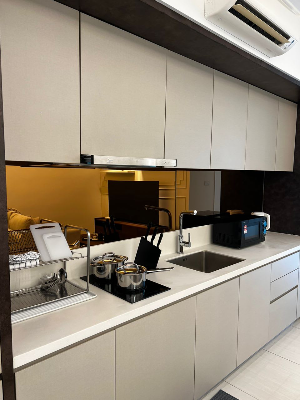 A modern, cozy, and relaxing studio apartment. Located strategically within Bukit Jalil City, atop Aurora Place and only a few (2) min walk to the Pavilion Bukit Jalil shopping mall, & it is near Bukit Jalil stadium. 1 queen bed & a foldable mattress. Food & shops are all just a few min walk away. ✤FREE WIFI ✤FREE parking (one) ✤Washing machine - washer dryer ✤Microwave oven ✤Induction cooker and pots ✤Spoons, forks, chopsticks, plates, and bowls ✤FREE rooftop swimming pool, & lifestyle gym
