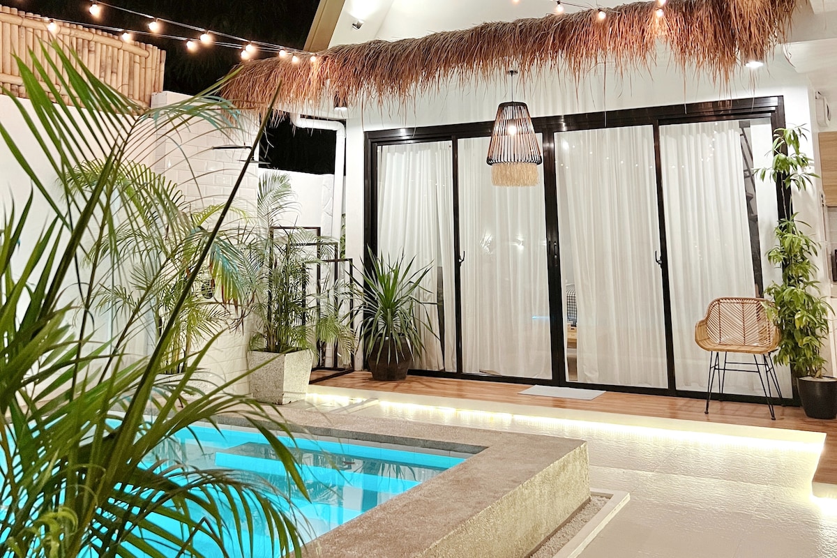 enjoy the lovely setting of this romantic spot hidden in the middle of this town. the property has a pool, outdoor kitchen, wifi outdoor toilets and shower areas, a garden of fruit bearing trees, stargazing area, a patio, badminton area and safe parking inside the gated property. the listing is exclusive only to the 2 guests who are checked in.