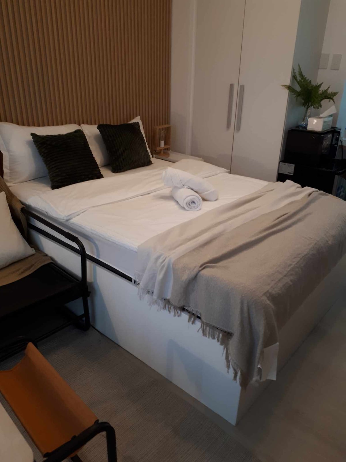 Terry-Torrie Staycation❤️ Staycation rates (22 hrs) P 1,500.00 weekdays/weekends (2 pax) P 250.00 per head additional pax (max of 4 addt’l pax) Free Kids 6 years old below Inclusions: -1br condo unit (air-conditioned) -Wi-fi 200 mbps with Netflix & Prime -55” Smart TV -Double size bed -Sofa -Dining table -Refrigerator -Induction cooker -Electric kettle -Kitchenwares and utensils -Shower and toiletries -Free water -Free breakfast for 2 pax (Addit'l breakfast meal for 150 pesos) -Honesty Store