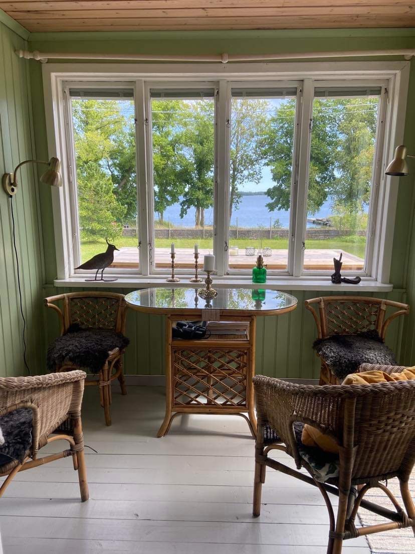 Welcome to charming studio, 38 m2 with beautiful lake view from the balcony. Rich bird life, foxes and deer can be seen with the binoculars. Take the bikes down to the harbor. Enjoy our wood-fired sauna and fall asleep in the beautiful bed. We offer fresh air, silence, quiet and good, clean drinking water from the tap. Excellent cycling/hiking trails in beautiful nature and cultural landscapes with medieval buildings. 50 km to Visby. 13 km to Fårösund. 5 km to bus stop. Car charger is available. You take care of the cleaning yourself.