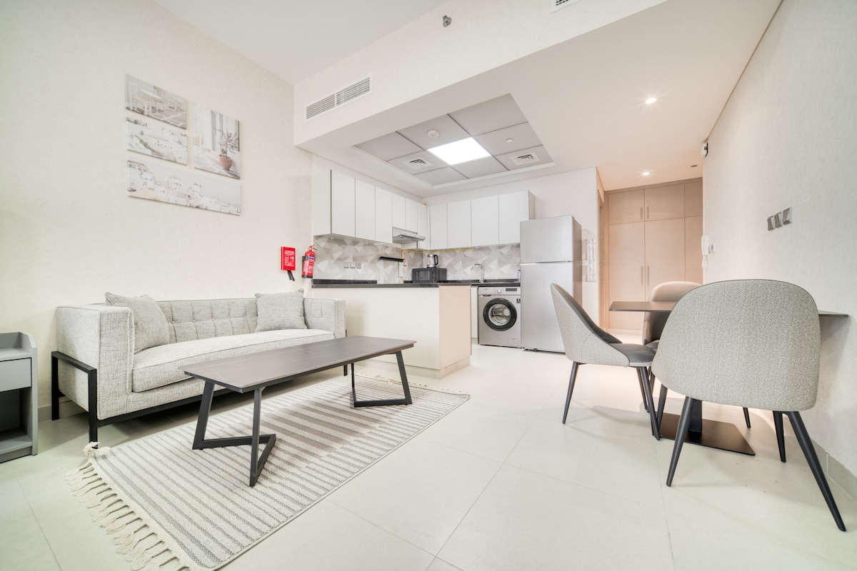 Enjoy a stylish experience at this centrally-located place. Relax and unwind in this peaceful and elegant abode. The place is full of features and gives you an opportunity to stay in the green community with Burj Khalifa view , lovely 1 bedroom apartment with all facilities. Enjoy the tranquil lush green landscape The site ☑️10 minutes to Burj Khalifa & Dubai Mall and SHZ Road ☑️14 minutes to Dubai airports ☑️10 minutes to Ras Al Khor Wildlife Sanctuary ☑️18 minutes to Palm Jumeirah