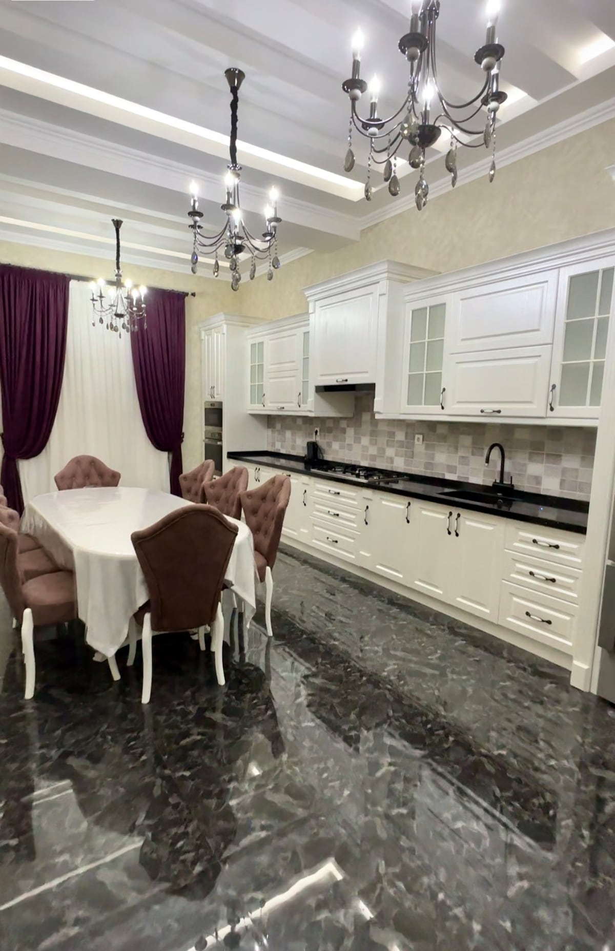 Spacious and premium penthouse apartments with panoramic view to Chimgan and breakfast included 3 bedrooms with washrooms amenities each and large living room with built in kitchen facilities. Own jaccuzi and sauna are built in This stylish place to stay is perfect for group trips.