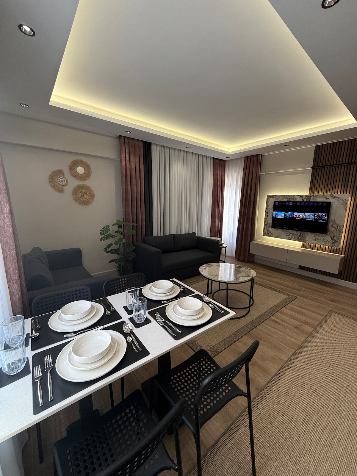 In the heart of the city center, this studio apartment, which offers an ideal accommodation for families, stands out with its modern design. It provides a comfortable home atmosphere with its large balcony, natural gas heating system and fully equipped kitchen (including pots, pans, plates, forks). Our 24/7 reception service and security cameras outside the apartment offer a safe and hassle-free accommodation experience. A perfect choice to spend time with your family in the city center!