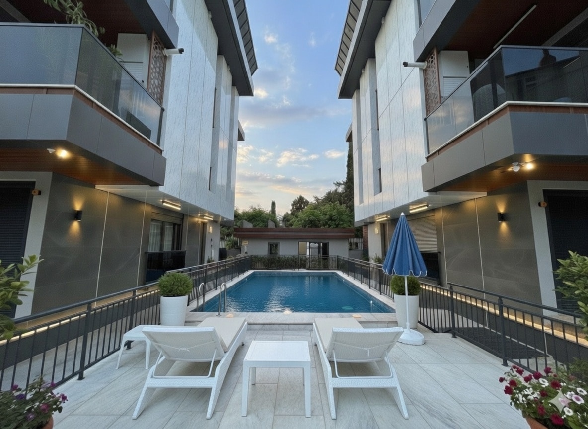 5 minutes walk to the sea in Konyaaltı. 3+1 duplex with PS5, pool, air conditioning. Netflix, underfloor heating and luxurious comfort. Wake up to the Mediterranean, watch the sunset in the private pool. In the city center, but in the calm of the sea. An unforgettable holiday begins here.