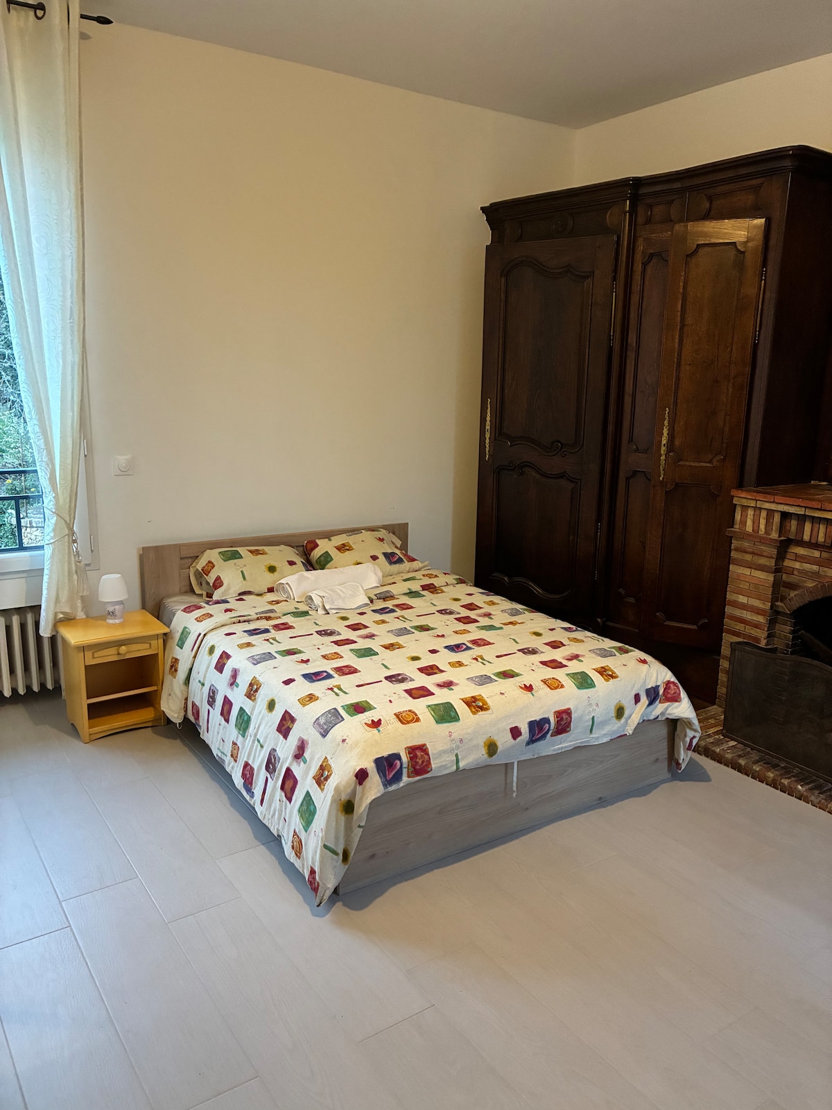 Spacious, well-decorated 60 m2 2-room apartment located close to the RER B Orsay-Ville station, comprising: - an independent entrance - one bedroom with bay window overlooking the garden with a queen size bed (160 cm) - a walk-in shower with a rain showerhead, side jets and chromotherapy - living room with HD TV - kitchenette with fridge, microwave, coffee maker and kettle - dressing room with hanging space