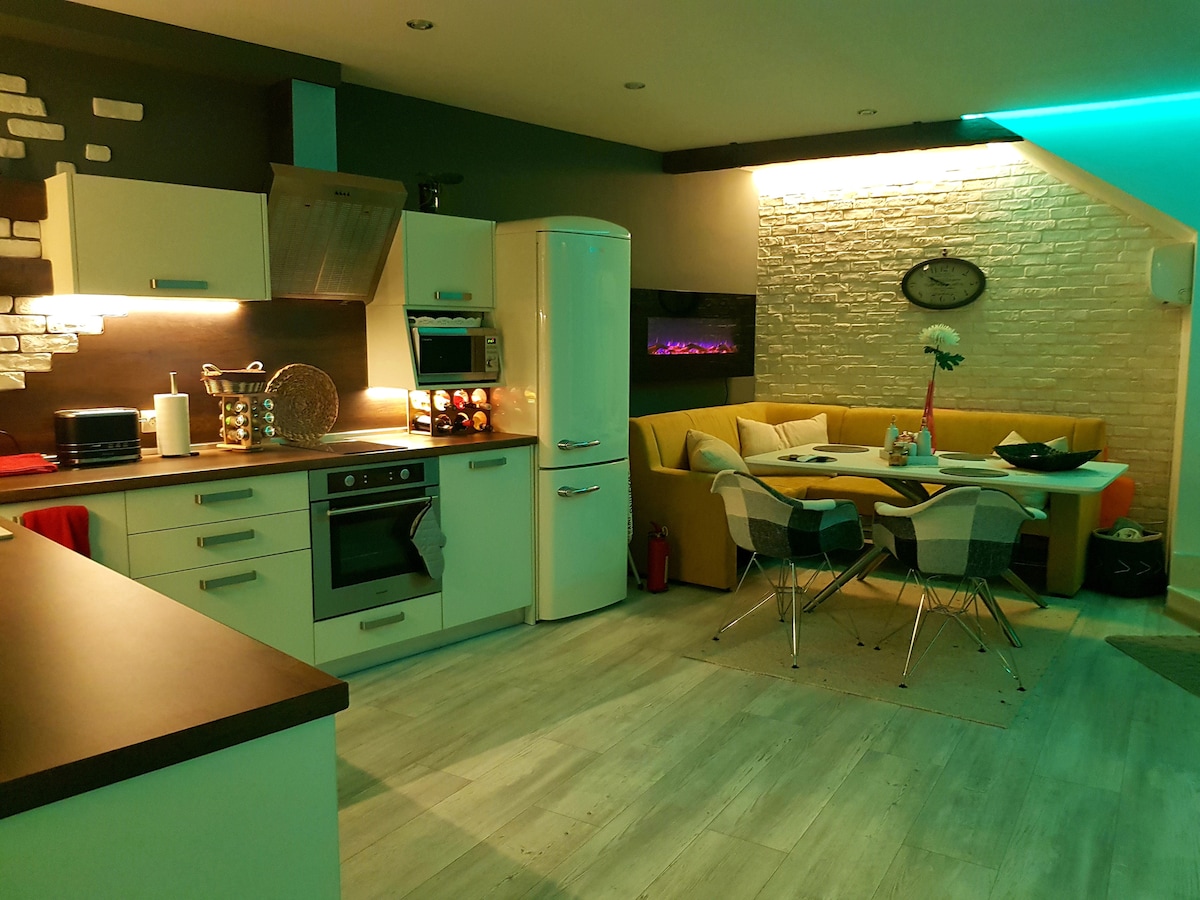 Hello! We build this stunning attic studio apartment to welcome guests in our beautiful city on Black Sea coast. The central part of the town is a pedestrian zone and it is famous with his lovely restaurants and shops. The area is a favourite destination for many tourists and young people. Our guests can enjoy quiet walk close the beach or feel the beat of the night life in lovely Sea garden where you can find a lots of attractions. Come in! You will love it and you will remember it forever!!!