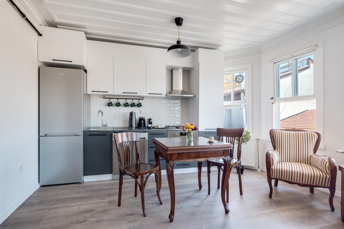 Welcome to our charming apartment in this historical building, just a few steps from the sea! In the heart of Büyükada, we offer an unforgettable accommodation experience with easy transportation and breathtaking sea views. - 1 Bedroom 1 Living Room Comfortable and spacious rooms. - Sea View: Wake up every morning with a magnificent view. - Historical Decoration: A unique atmosphere decorated with carefully selected antique pieces. - Central Location: Walking distance to the pier, island center, restaurants, cafes