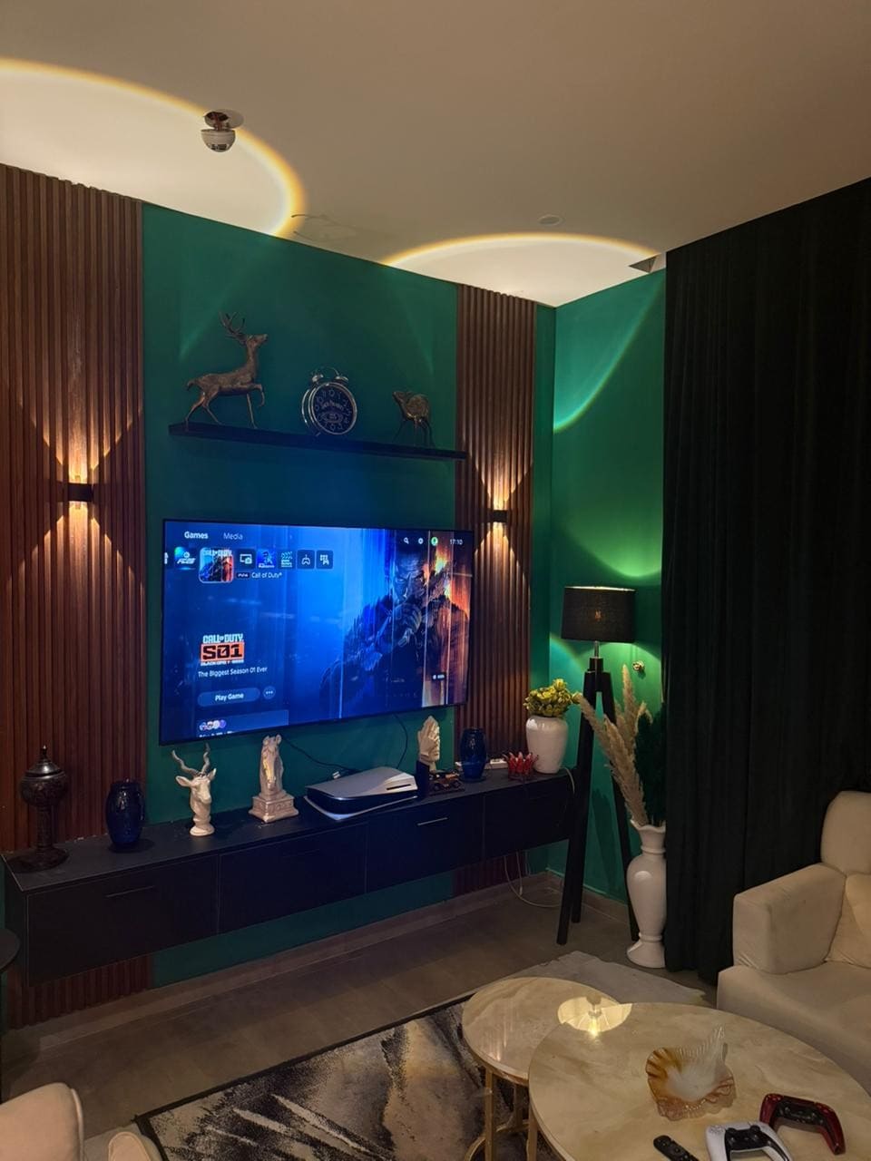 1600 square feet and access to mall ⦿Spacious luxury living room with a 65inch" QLED TV ⦿Soccer Table ⦿Two Bedrooms ⦿Self check ⦿Fully equipped kitchen ⦿On-site D-Watson,SecondCup,Bolt and Brodway 🛋 Comfort & Convenience ⦿24/7 heating & cooling (inverters) ⦿2 extra mattresses available ⦿Clean linens ⦿Your own personal Free parking space ⦿24/7 Backup electricity around the clock ⦿Visitors allowed ⦿Daily Cleaning ⦿Dedicated Smoking Area ⦿ Complimentary Water
