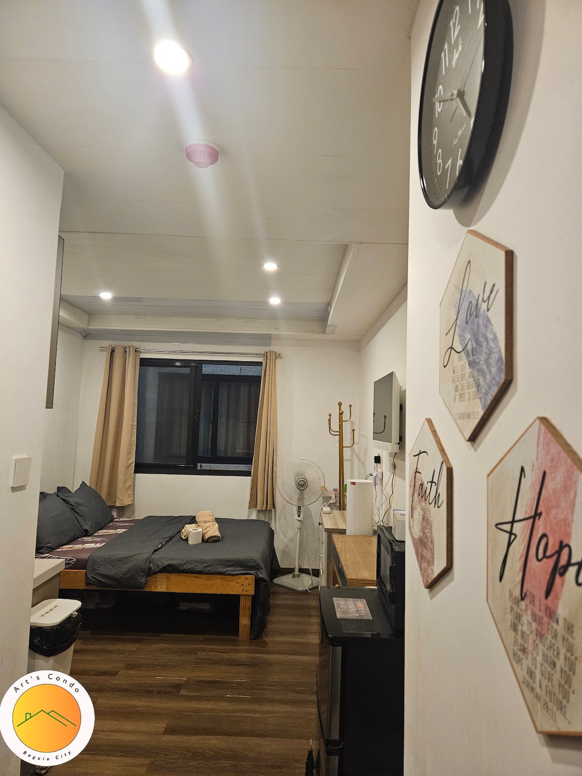 Styled & Managed by JQ PROPERTIES Cozy, private, and fully-furnished studio unit with fast wifi (10mbps). Comfy queen bed with Netflix on TV. Have extra guests stay with you with the comfy extra double mattress on the floor. This unit is located in a prime and vibrant area with lobby access to a mall with Savemore supermarket on lower ground. Across University of Baguio (UB), around the corner from restaurants and shops on session road, and walking distance from Burnham Park and SM.