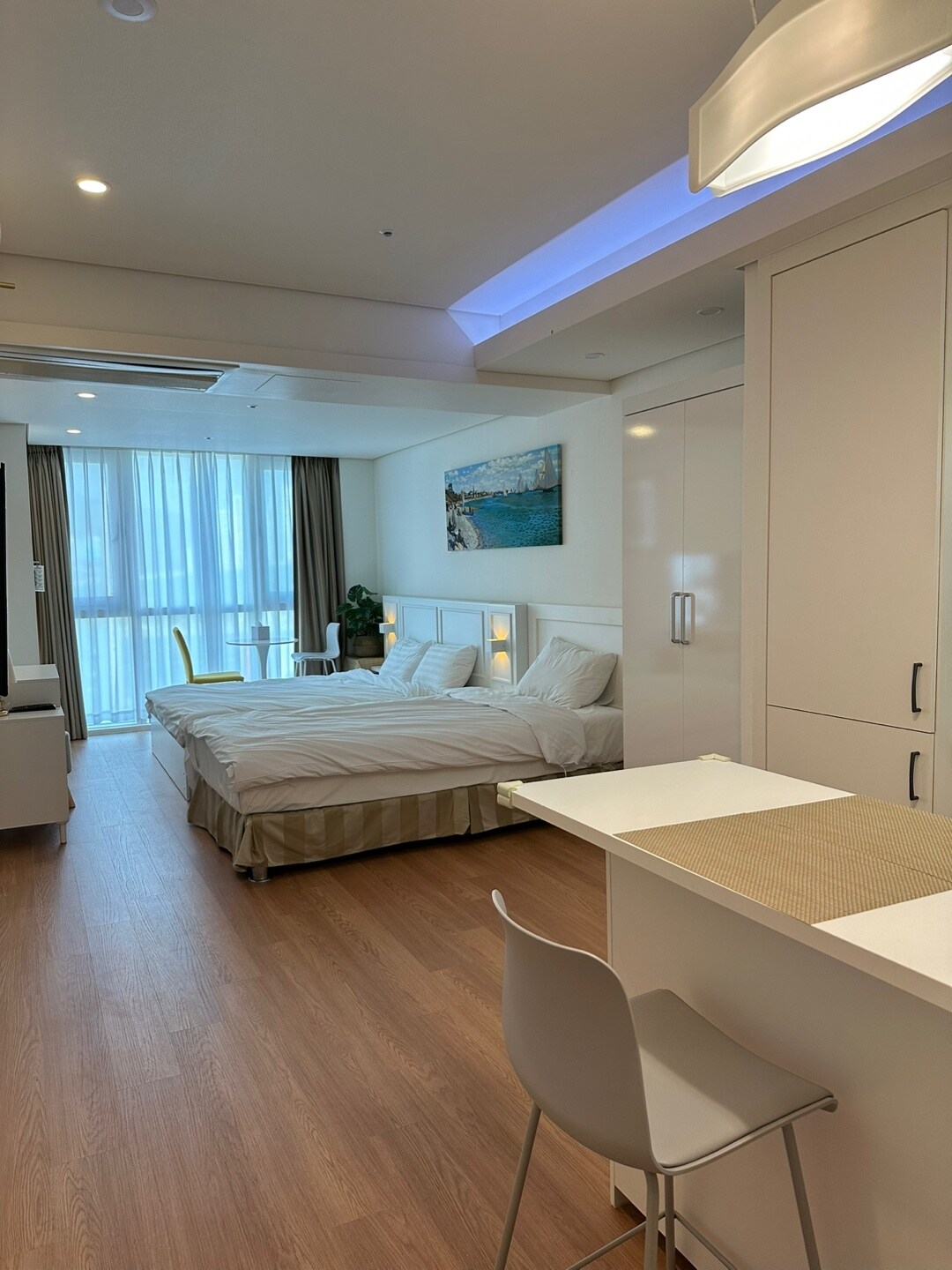 -Right in front of Jagalchi Station. It's right in front of restaurants and convenience stores. It is very clean with the finest interior. -There are beds, bedding, dishes, TV (Netflix available). -Queen bed (bed for 2 people) -Capsule coffee is provided. -Non-face-to-face check-in and check-out - Dryer, hair straightener, shampoo, conditioner, toothbrush, toothpaste, lotion are provided. - Water purifier. Ice in the freezer -For parking, please use the public parking lot in front. Parking fee is charged (10,000 KRW per day) -Please tell us in advance for early check-in and late check-out (additional charge incurred) - Luggage storage available. Please let us know in advance when storing luggage.