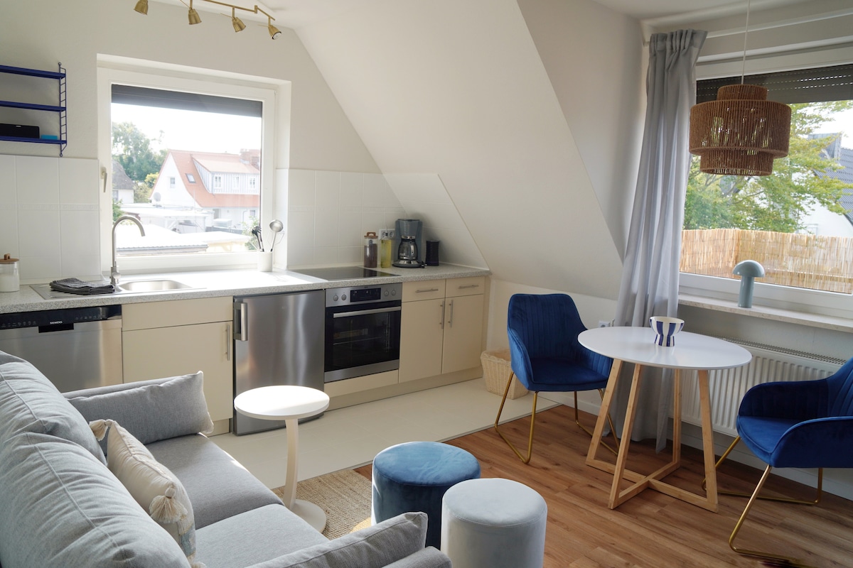 Welcome to my apartment, GreyPearl. This freshly renovated, high-quality 45m² apartment offers everything you need for a relaxing and active stay in Büsum: → King-size bed → Smart TV & Netflix in both the living room and bedroom → Nespresso coffee machine → Modern kitchen → Terrace with seating → Walking distance to the town center and only 300m from the Perlebucht lagoon → Bed linen and towels included → Parking space available